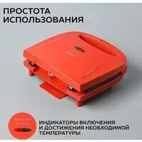 сэндвичница, 750 Вт, поверхность: гриль-пластина, красный