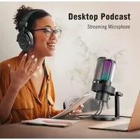 электретный (малый конденсатор), настольный, для стриминга и подкастов, кардиоидная/круговая/двойная ("восьмерка")/стерео направленность, 20-20000 Гц, разъем подключения USB Type-A, длина кабеля 2 м