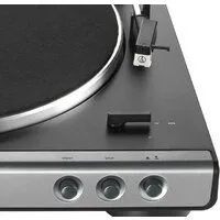 ременной привод, 33 1/3, 45 об/мин, электронное переключение скоростей, встроенный фонокорректор, тонарм поворотный (прямой), картридж с подвижным магнитом (MM), цвет серый/черный