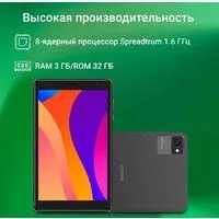 8.0" IPS, 60 Гц (1280x800), Android, UniSoC SC9863A, 3 ГБ / 32 ГБ, Wi-Fi + сотовая связь, аккумулятор 4000 мАч