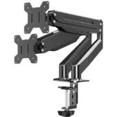 для мониторов, 17-27", 2 монитора, настольный, поворотный, с регулировкой высоты, кабель-канал, струбцинное крепление, наклон 80°, поворот 90°, регулировка высоты 0-400 мм, цвет черный